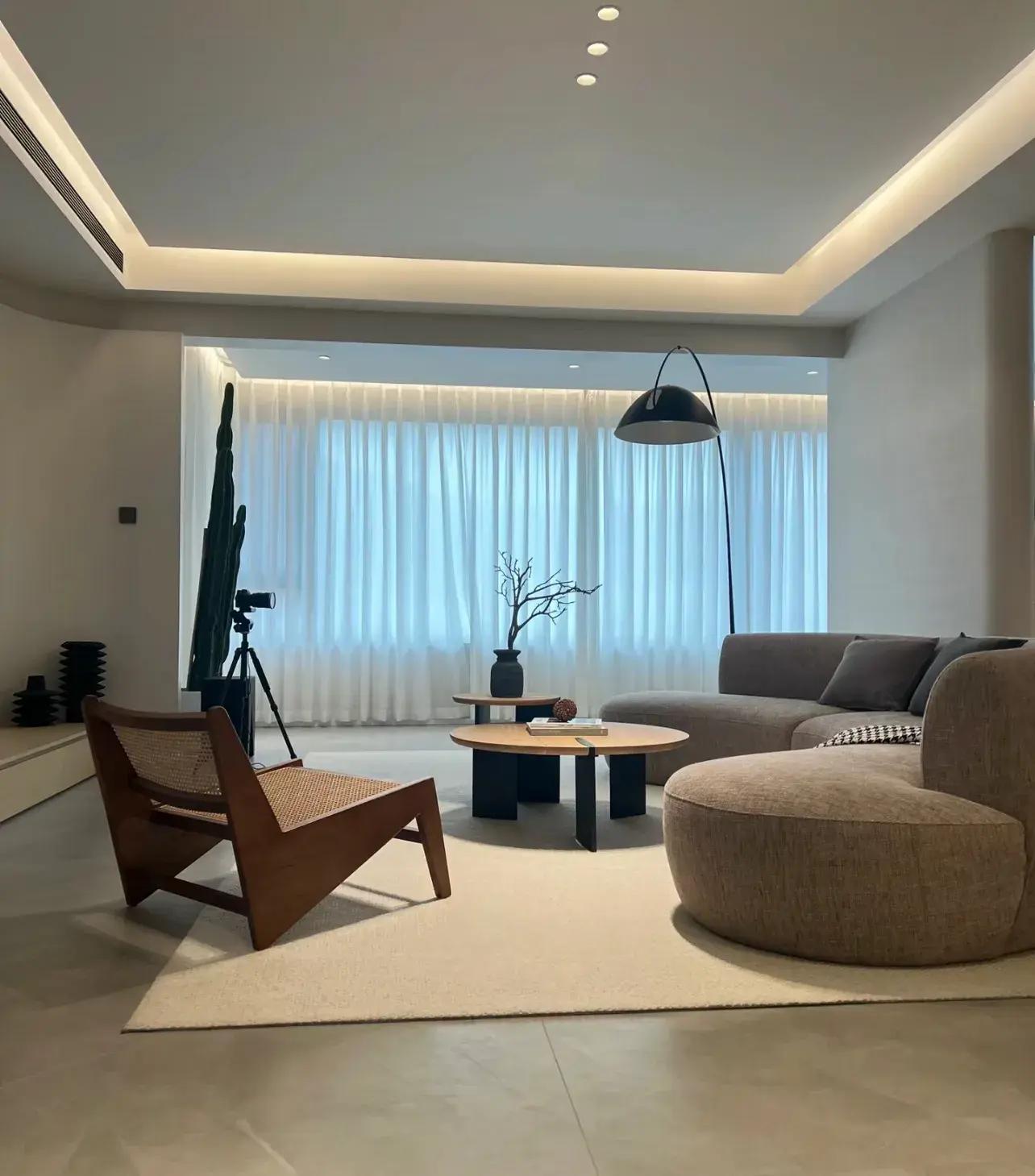 我也是到了第二套房子裝修才明白,其實相比用爛了的洗牆燈,更簡單且更出效果的方式是懸浮頂,頂部都是木工板,沒有不平的問題,視覺上也更簡潔出效果。