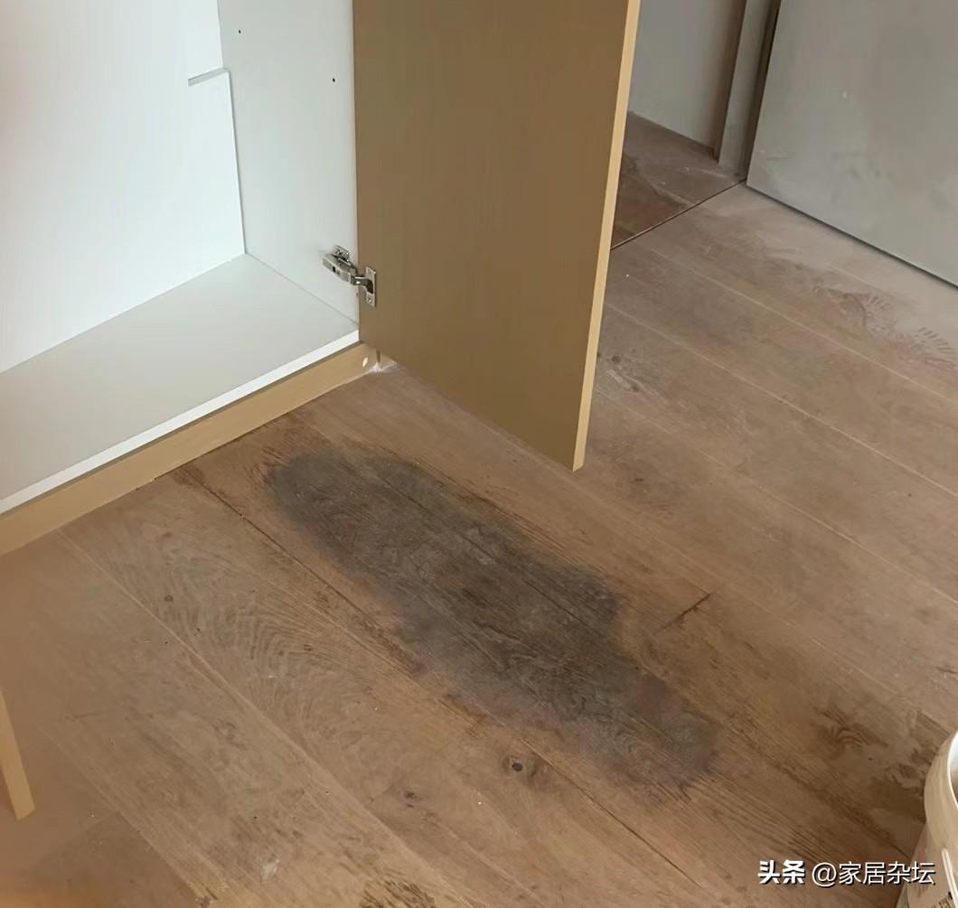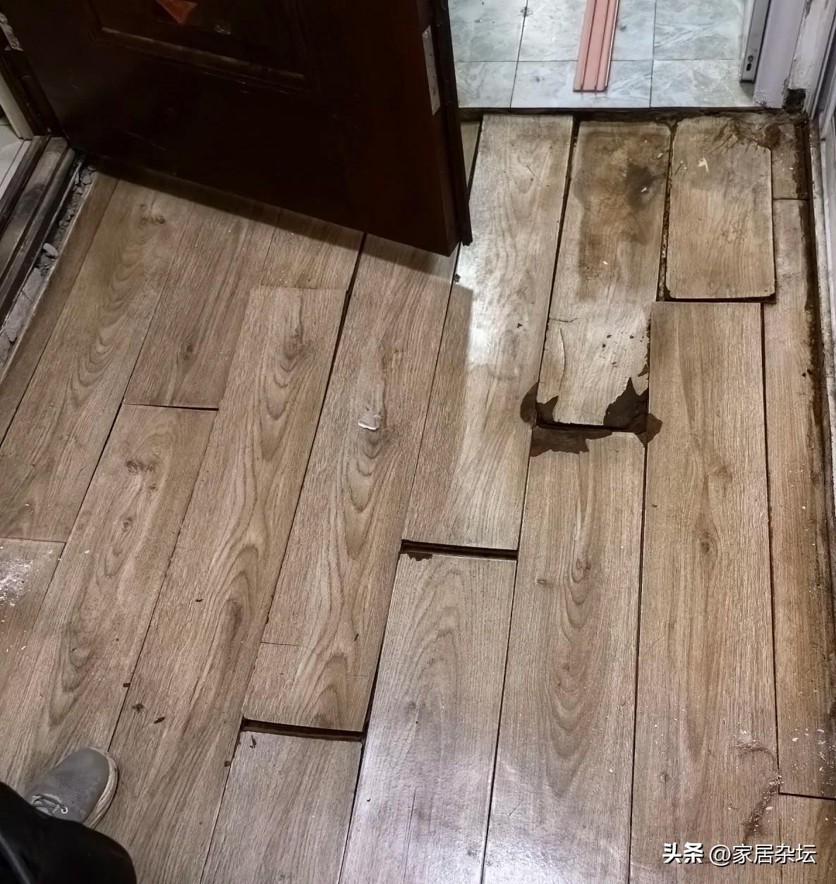 所表現出來的狀態,就是木地板邊緣的地方發黑,時間長了可能會起皮,嚴重了會拱起。