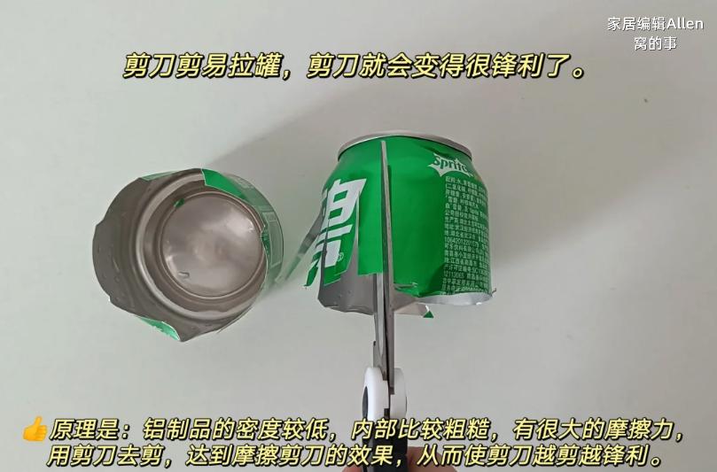 其實真的太浪費了,只需要把鈍了的剪刀,剪一剪飲料易拉罐,剪刀就能變鋒利了。