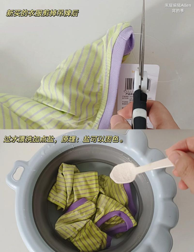 新衣服買回來,第一次清洗的時候,記得加點食鹽浸泡一下,可以起到有效的固色作用。