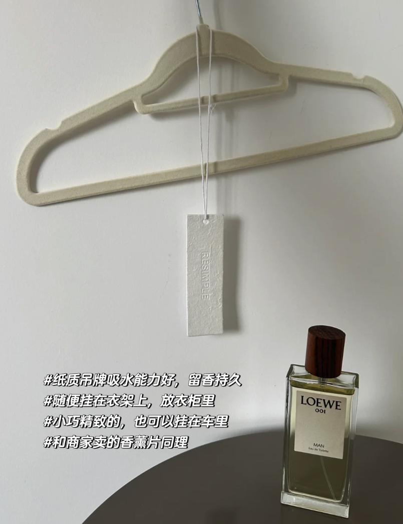 紙質的吊牌有很強的吸水能力,而且留香非常持久,平時噴點香水,或者滴一點香薰,就可以掛在衣櫃裏面,小巧精緻幾乎毫無存在感。