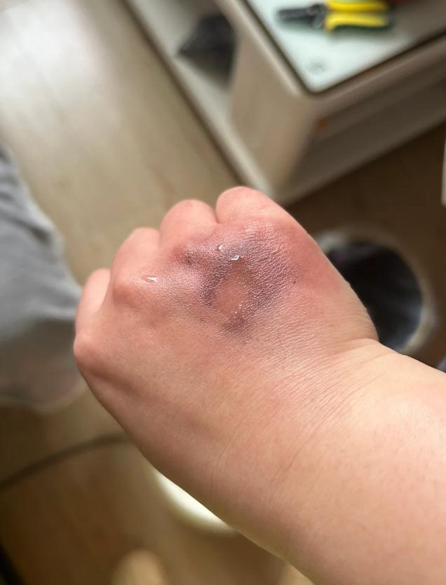 碰到裸露的電線,直接嘭的一下,火花帶閃電,手直接被打的雀黑,給我疼的,希望不要留疤……