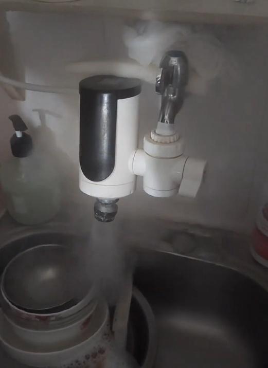 準備洗碗,放了熱水關不掉了,白煙直冒,溫度直接衝上90多度,裏面已經燒的通紅了,家裏也一股濃濃的塑料味,太可怕了,嚇得直接拔掉電源。拆掉水龍頭後還一直在冒白煙!