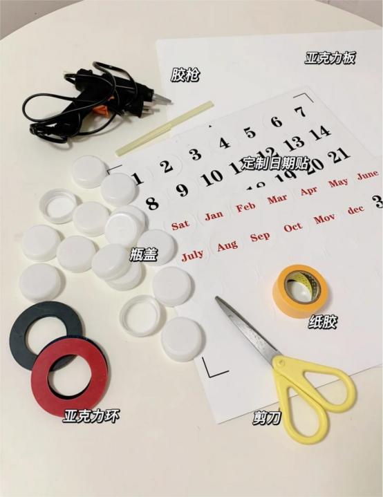 網上採購其他的配件,包括:熱熔膠槍、定製亞克力圓環、日曆貼字,總費用三五十上下。