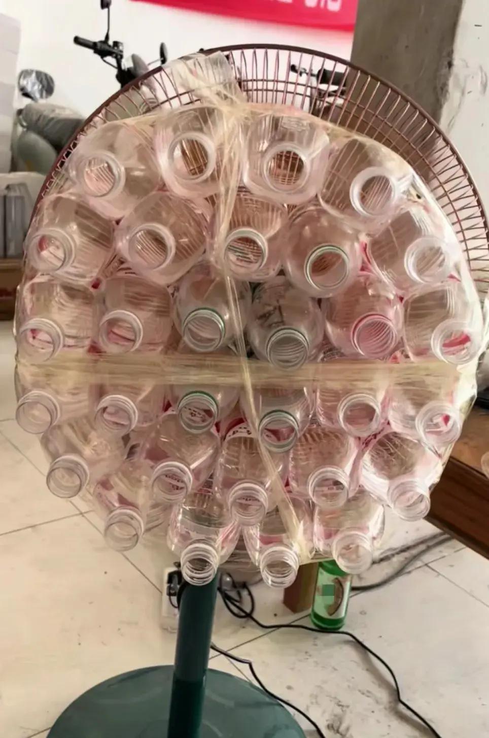 其二,最近很火的“大學生創新:風扇+礦泉水瓶=空調”!