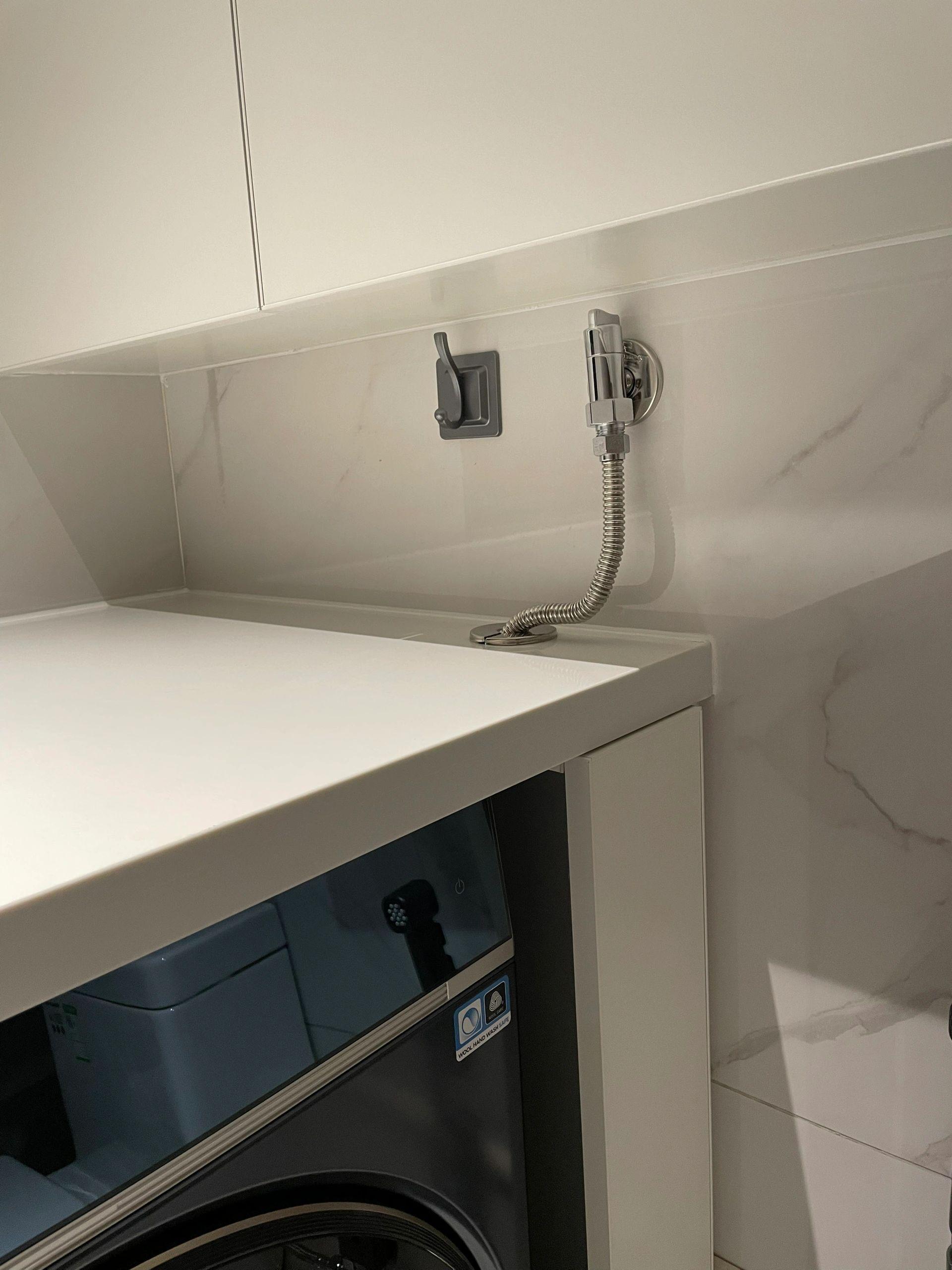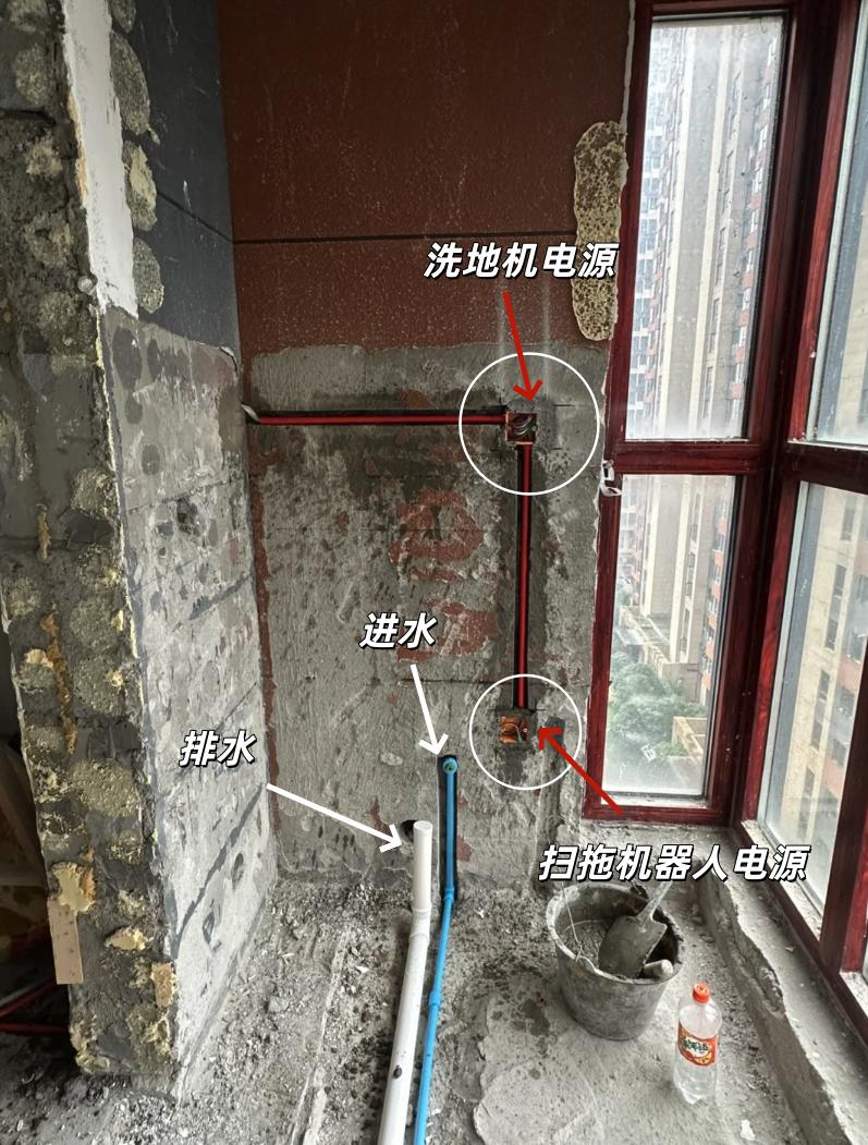雖然洗衣房設置在主衛了,但裝修時,我家陽臺依舊是做了上下水設計,其實目的是爲了安裝能自動上下水的洗地機,和掃拖機器人。