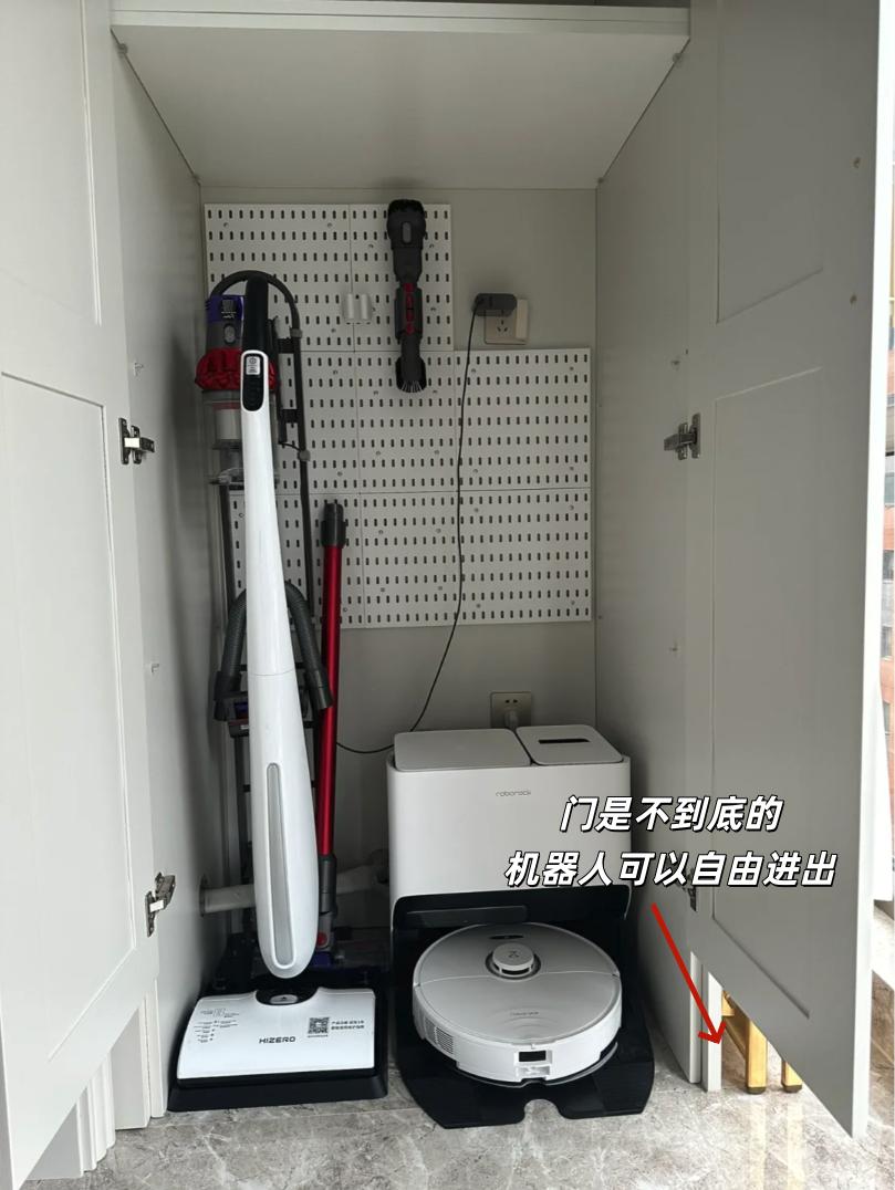 裝好無底櫃,這裏就成了一個迷你的家政間,背後還安裝了洞洞板,還能額外掛一臺吸塵器。