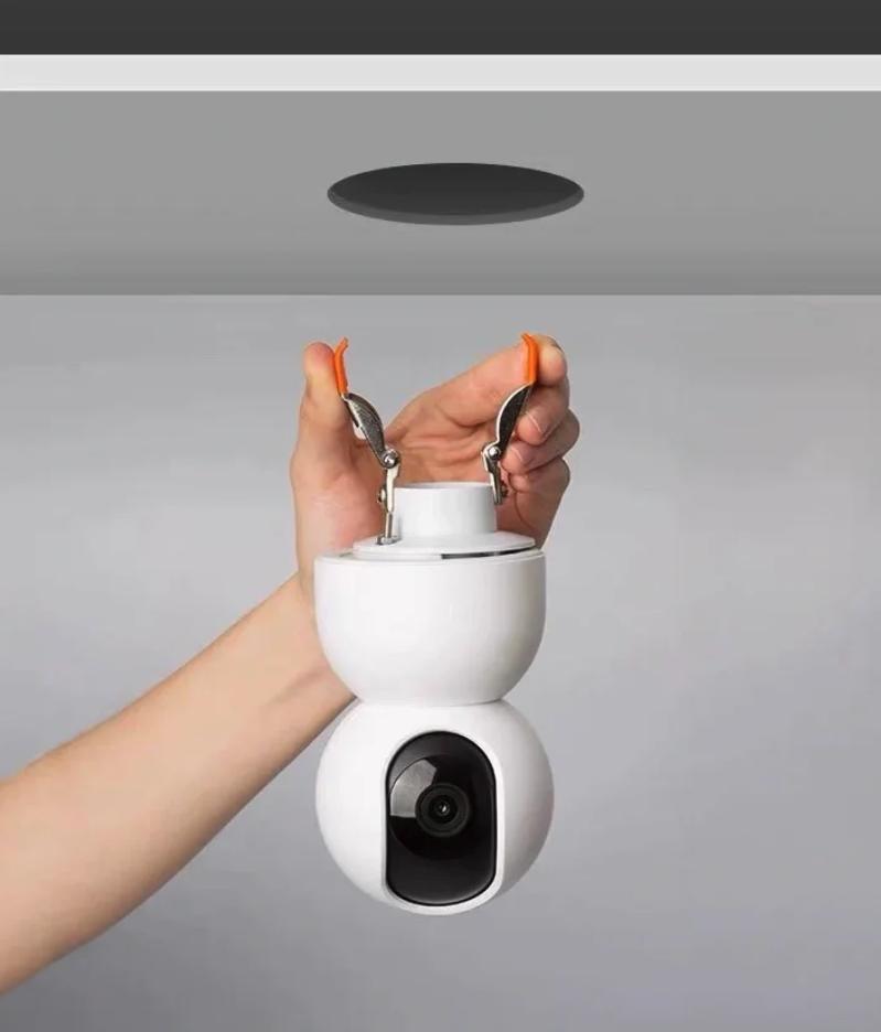 專門買了一個和射燈一樣的攝像頭底座,安裝後就可以和射燈一樣安裝在吊頂上了,安裝和拆卸檢修都很方便,主要是電線完全被隱藏了,從外面看特別美觀,也不怕娃誤觸了,存在感特別低,超讚~