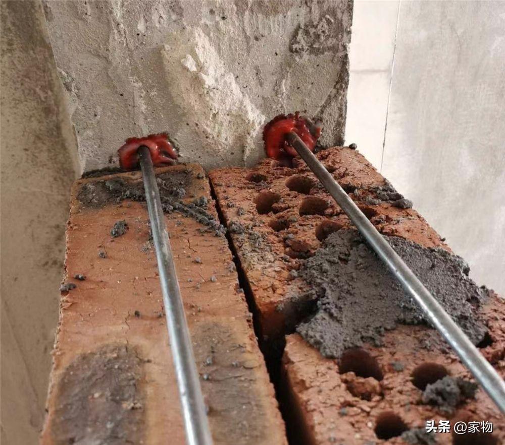 砌牆過程中,往中間打鋼筋的作用就是分散受力,讓牆體更加穩定堅固,一般的標準是每隔50釐米,打上兩根鋼筋,而且一定要有植筋膠纔行。