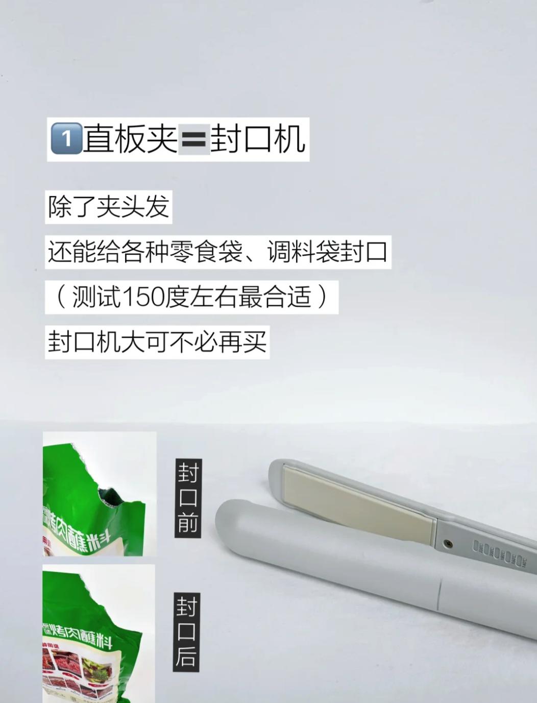 跟着下面這位阿姨,又讓我學到了一招,原來封口機根本沒必要買。像家裏有直髮夾板的話,也能給包裝封口。