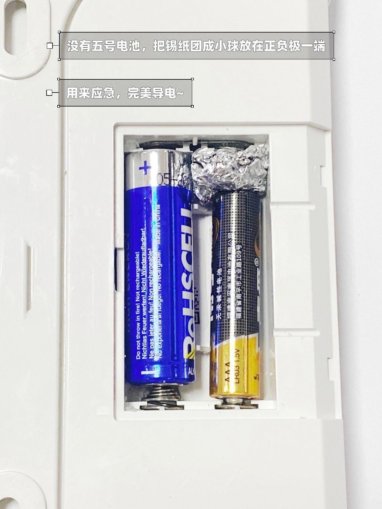 第四招,可以給7號電池應急用,如果家裏缺五號電池,又恰好有七號電池的話,就可以把錫紙攢成小團,搭配七號電池塞進電池倉,一樣可以用。