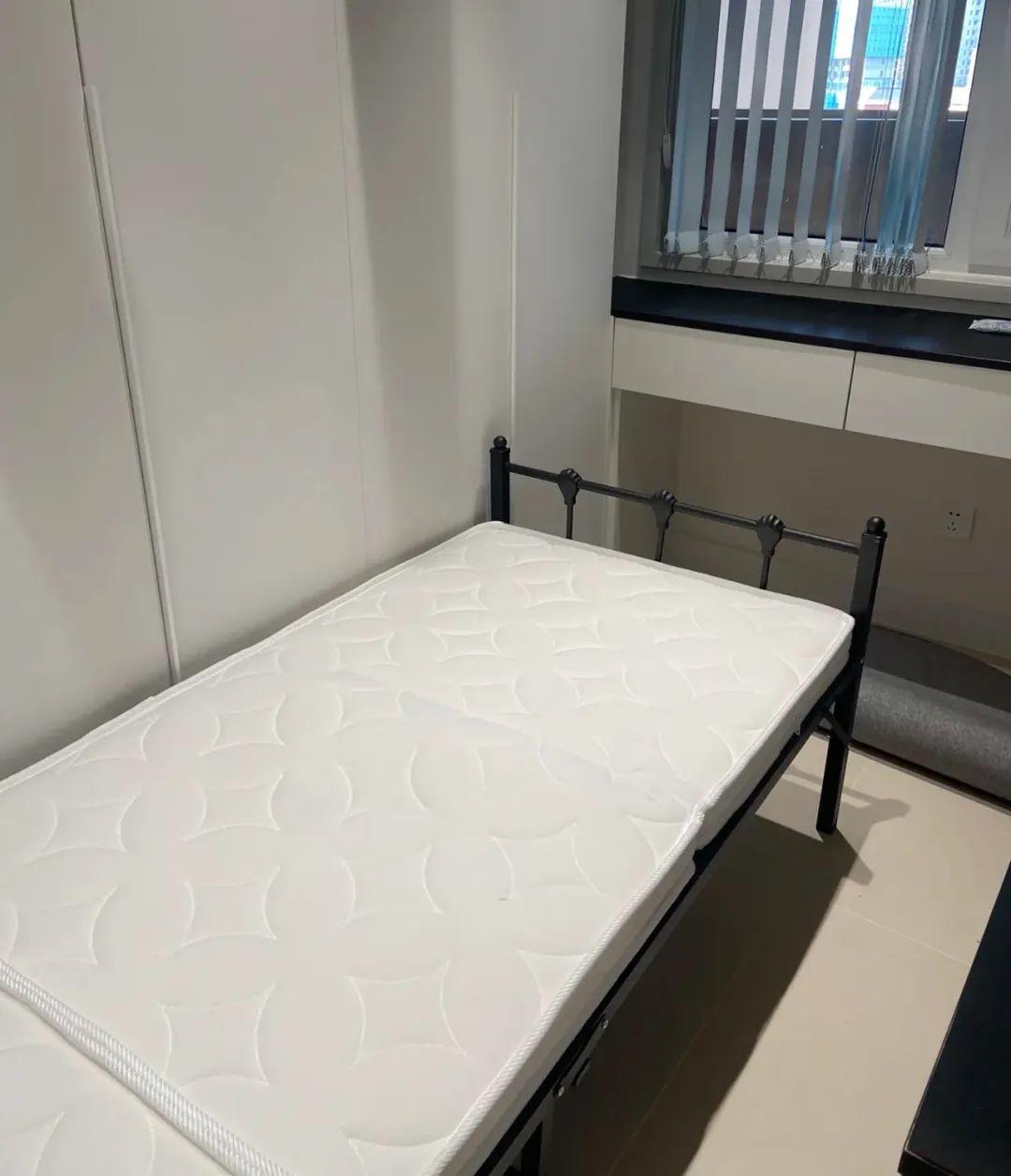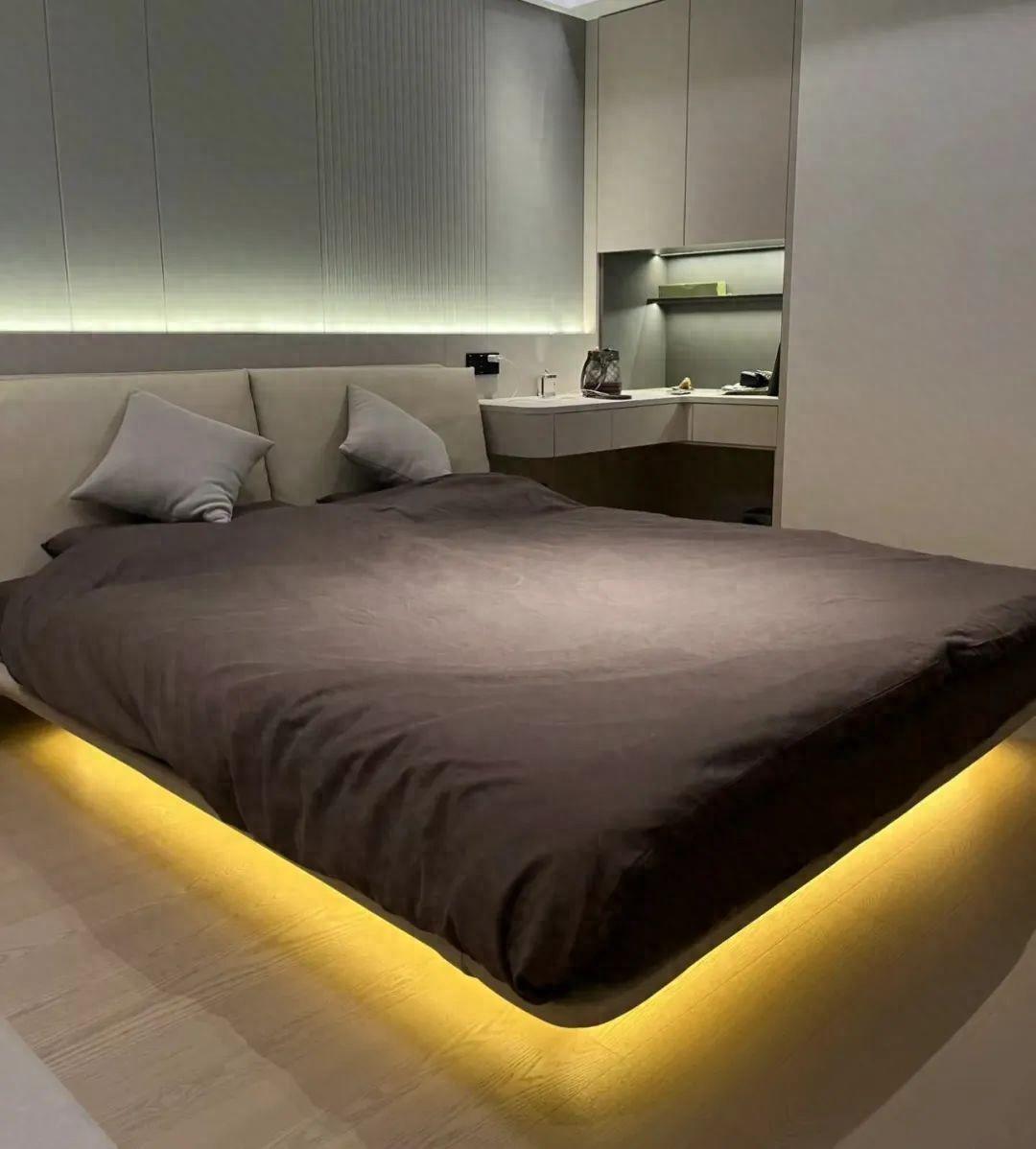 看牀的時候,被這個懸浮牀的顏值迷倒,隱形牀架配上牀底一圈感應燈帶,高級又有氛圍感。問了一下商家價格,光一個牀架得四五千,傳說中的碳素鋼懸浮牀果然不同凡響。