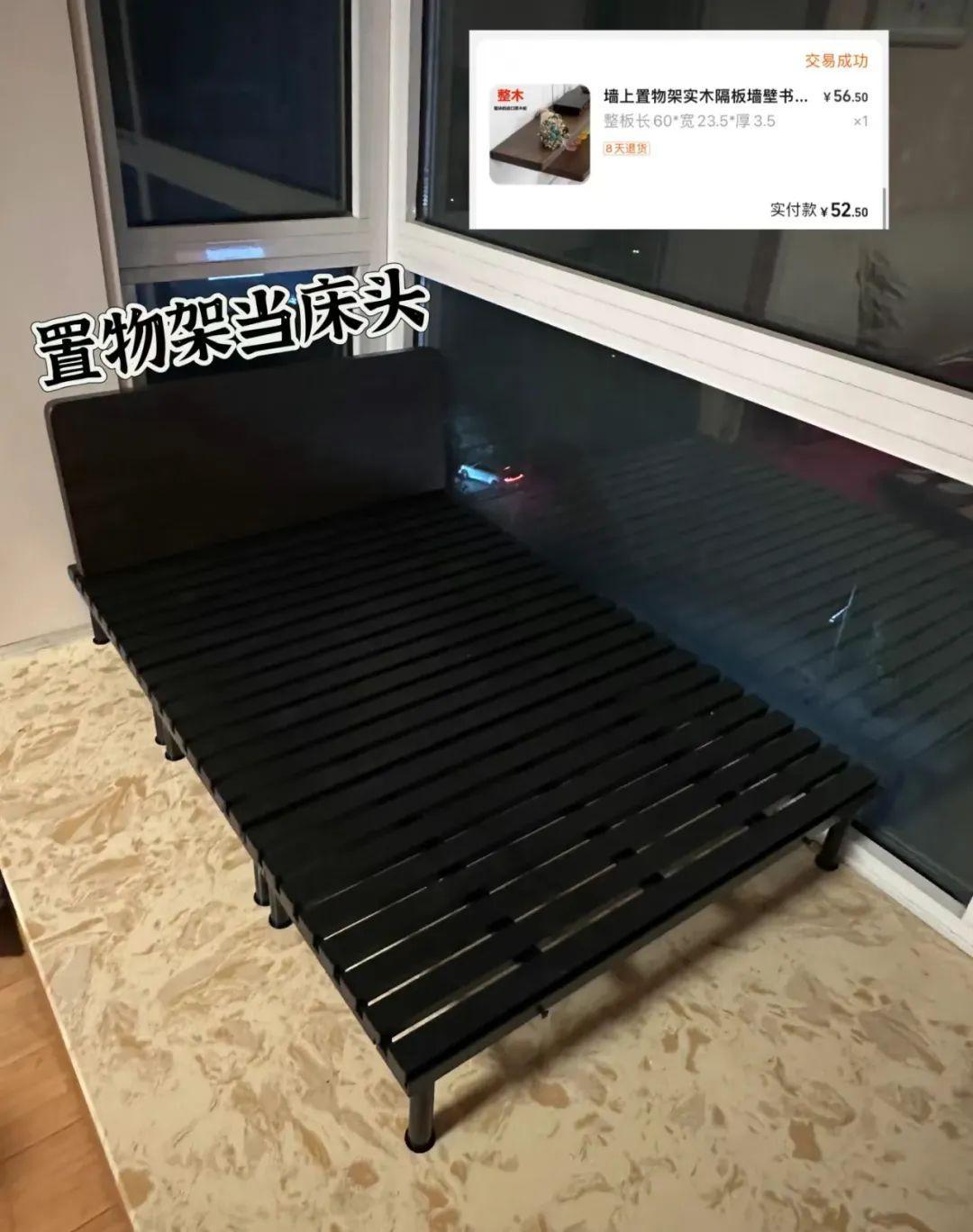 如果你家已經裝修好了,那也沒必要花大價格重做地臺,我們可以直接借鑑這個思路,買個牀架回來,平替版地臺牀get!