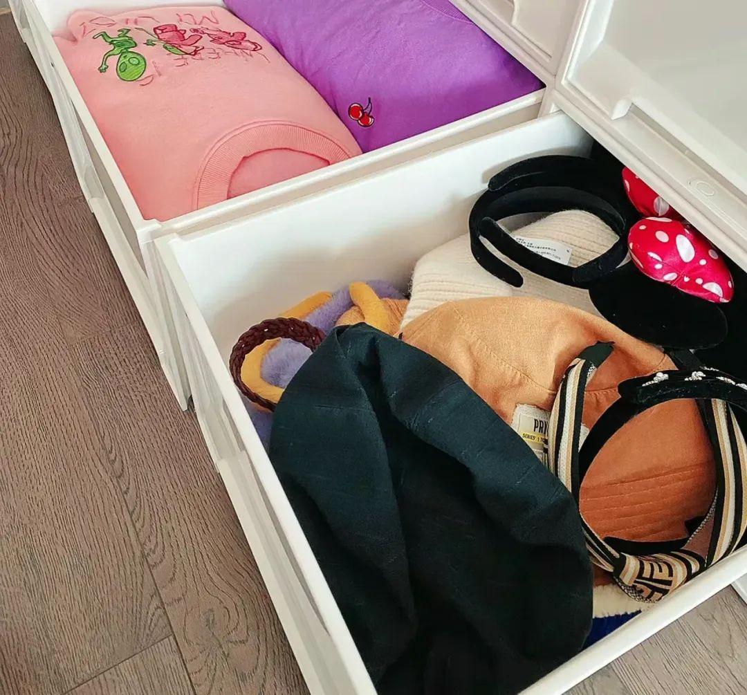 抽屜衣櫃,還有個好處是將衣服可以按照季節分類,暫時穿不到的衣服放底層。