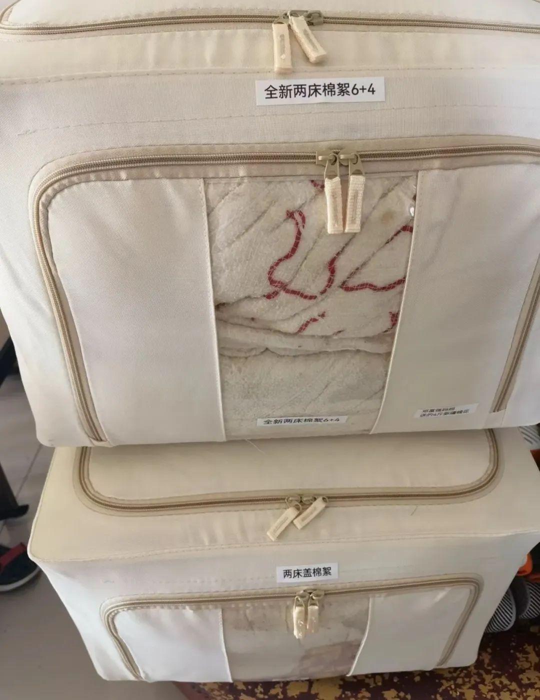 而且它有兩面雙頭拉鍊可開,側面還有透明窗戶,可以看到裏面裝了啥。被褥牀單、冬天的厚衣服,啥都能裝。