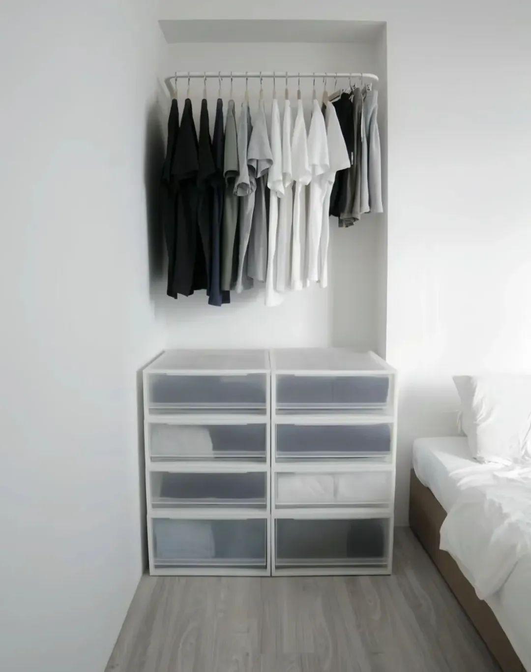 這種抽屜衣櫃規格很多,非常靈活,甚至可以壘起來當鬥櫃用,上方放雜物。