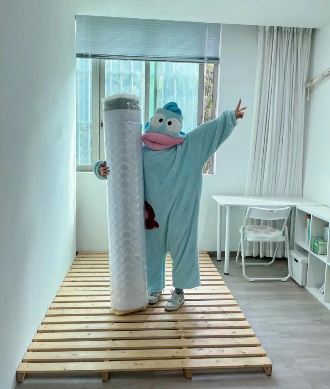 如果你買了直板的那種牀墊,靠自己這點力氣壓根出不了房間門,還得找搬家公司,費錢的很。