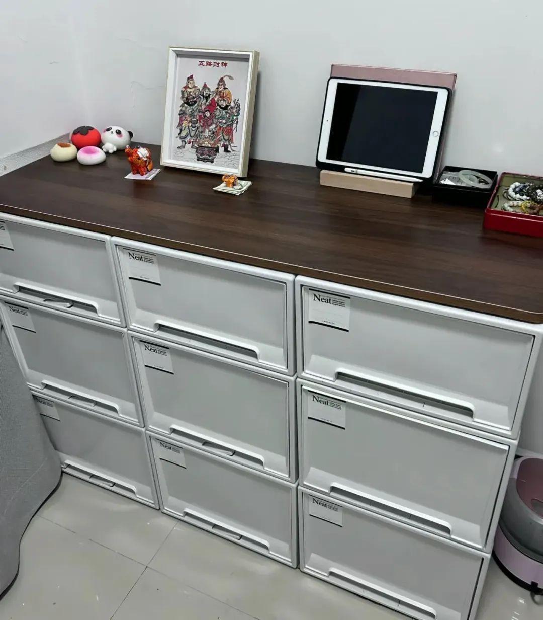 抽屜的高度可以調節,靈活方便。非常適合出租屋過渡期的時候使用,沒有氣味,結實耐用,而且價格也比實木櫃子便宜的多。