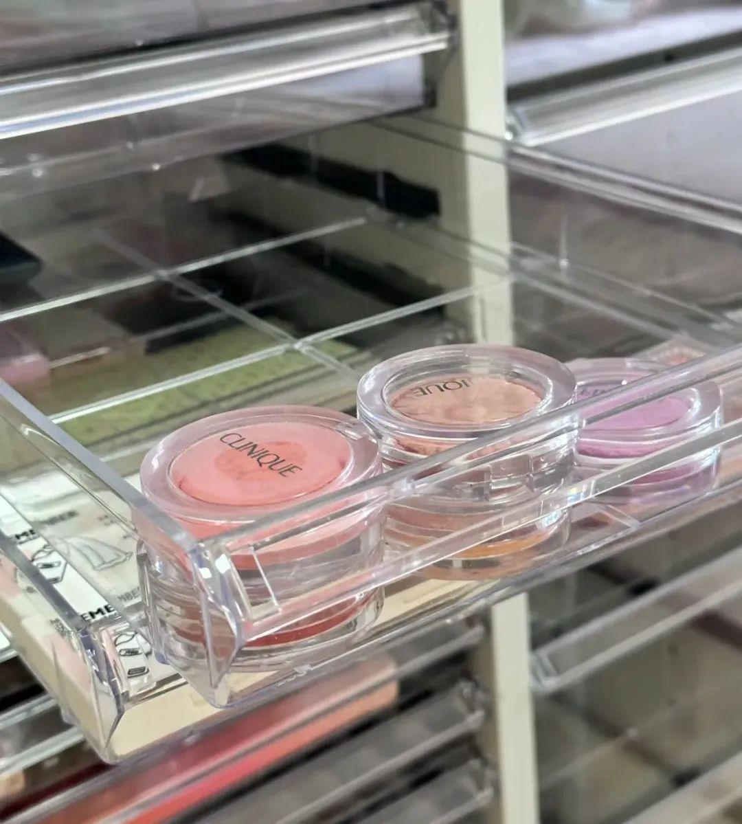 放臥室,可以當梳妝檯收納櫃,多少彩妝都放得下, 透明的抽屜櫃,還容易找。