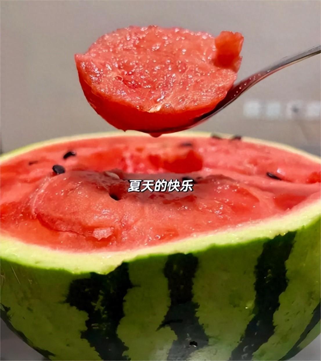 又到了喫西瓜的季節!!誰能懂抱着半個西瓜拿着勺子炫的快樂~