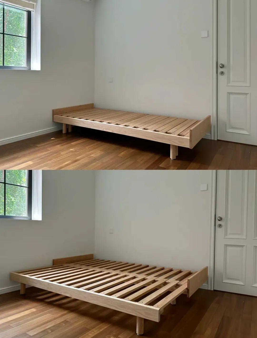 如果你家已經裝修好了,那也沒必要花大價格重做地臺,我們可以直接借鑑這個思路,買個牀架回來,平替版地臺牀get!