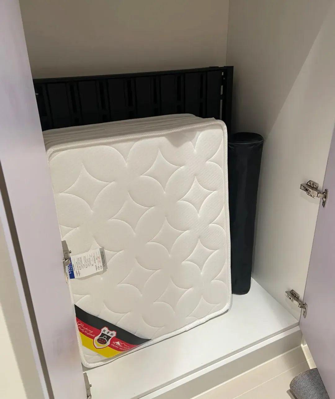 牀架和牀墊都可以摺疊,不用的時候,可以摺疊收納進儲物櫃,比沙發牀還省空間。