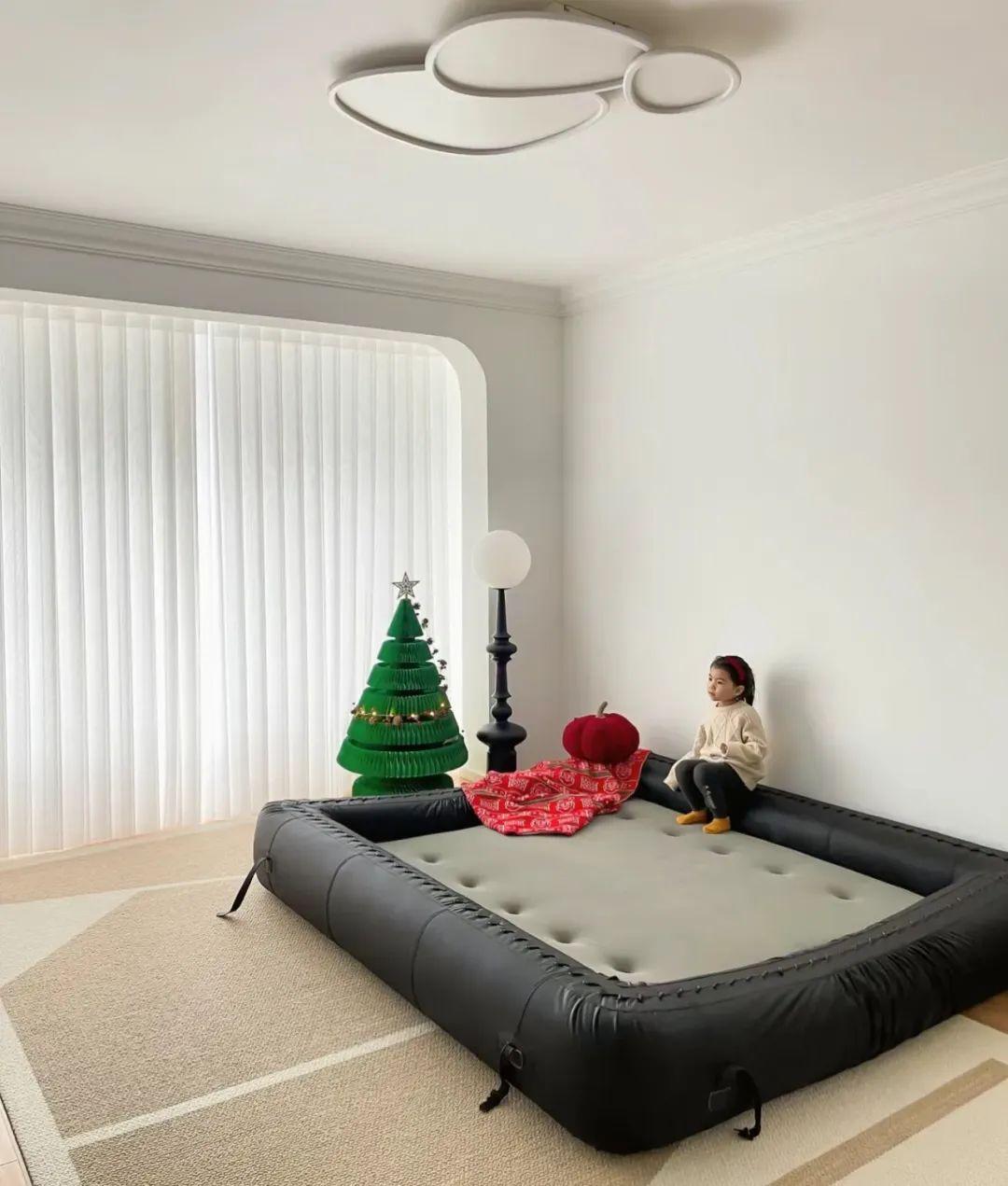不用了直接放氣,像牀單一樣摺疊收納,放進儲藏櫃也不佔地方,直接給你空出一個小房間當休閒區。而如果你買了傳統常規的大牀,那這個小房間啥也幹不了,放張牀就滿了。