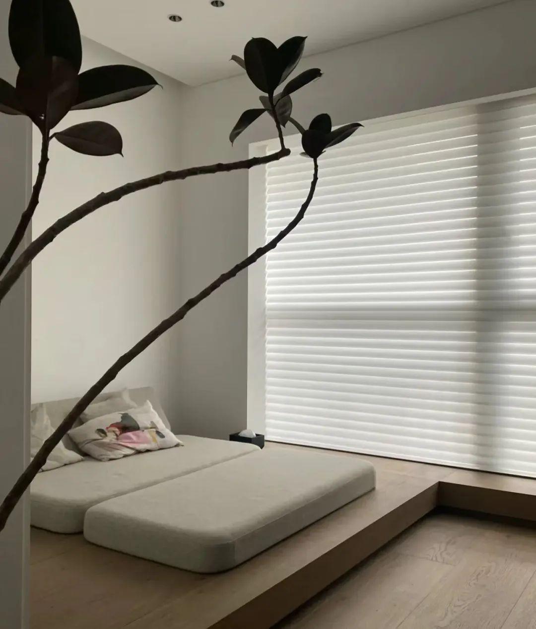 小臥室現在不流行榻榻米了,這種地臺牀更香。地臺的面積可以自由決定,模糊了地板和牀的分界線,牀墊在哪牀就在哪,這簡直就是臥室視覺空間擴大術。