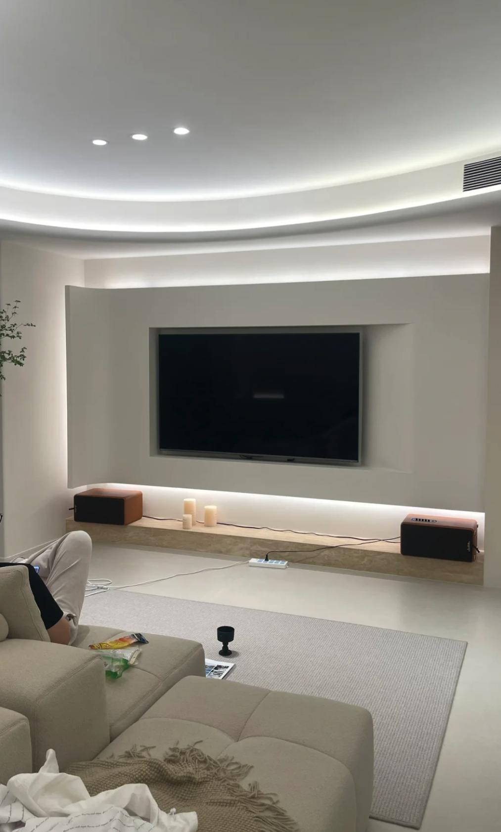 因爲現在電視機也是越換越大了,這內嵌的想換大電視,非得砸掉重裝纔行,完全就是雞肋中的雞肋,關鍵做這個造型牆還得花不少錢呢!