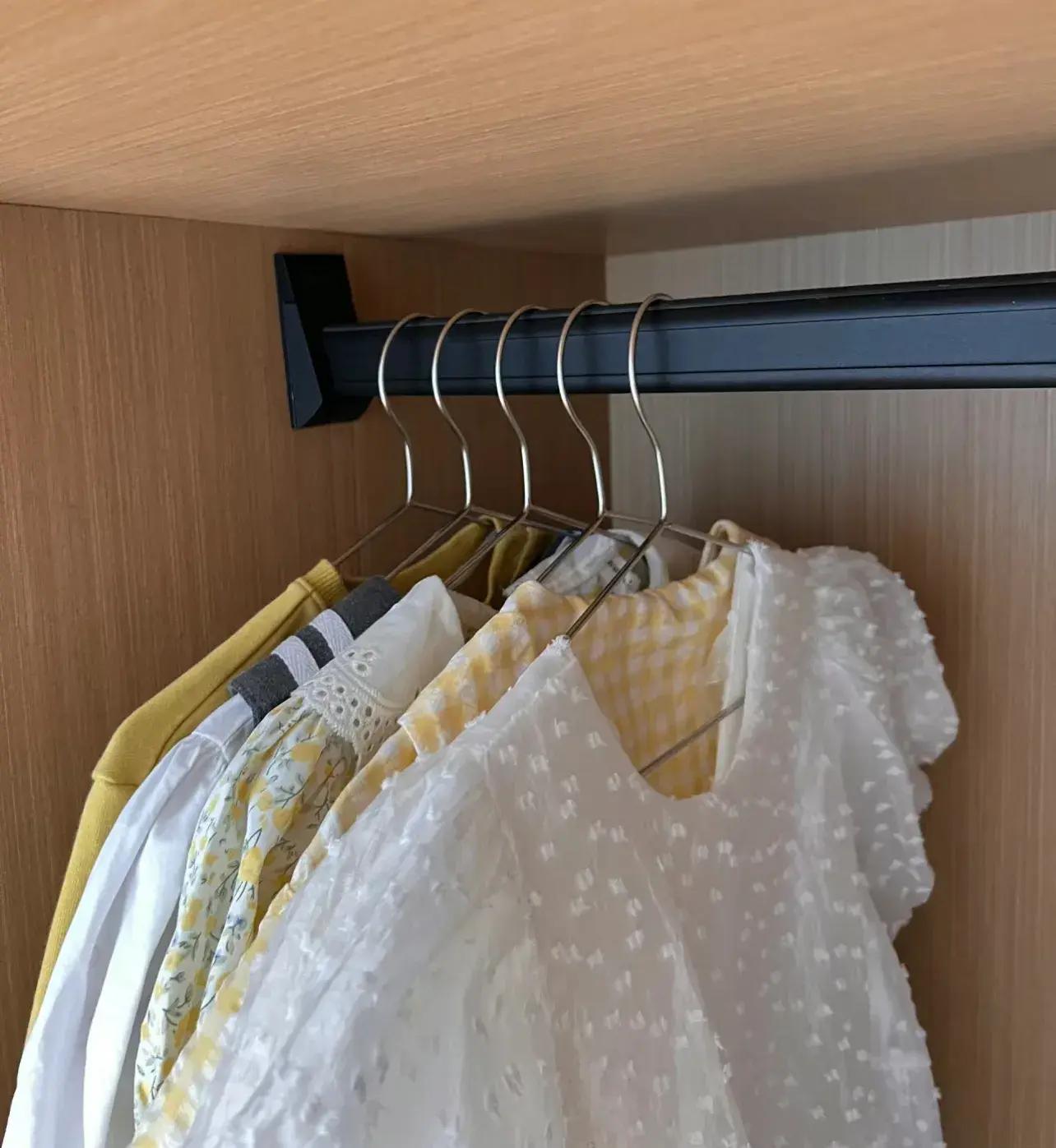 因爲晾曬、衣櫃可通用,所以很多時候,收衣服就是直接把衣架帶衣服,一股腦往衣櫃裏掛。