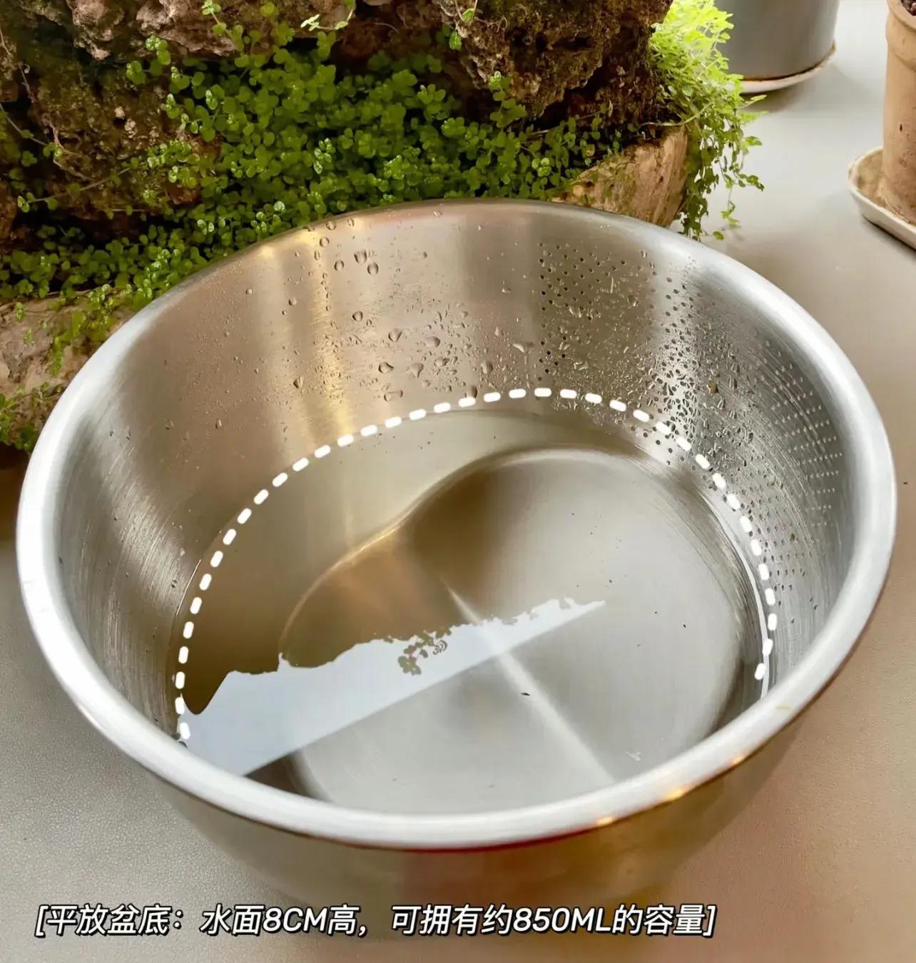 平方時,盆底,還有8cm的水位線(850ml)的容量,也不至於剛倒進去,就流的嘩啦啦。