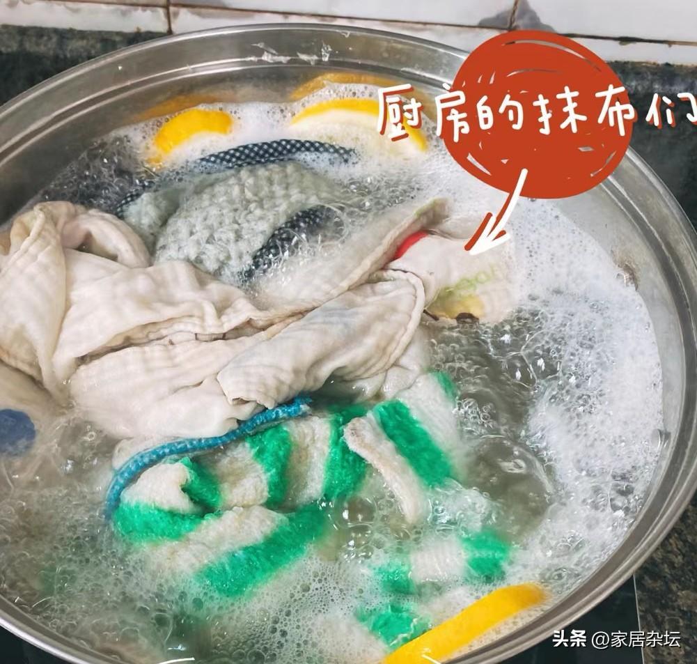 ①、對於家裏常使用的抹布,個人建議大家每隔一天用熱水燙一次,然後用洗潔精或者是鹼水清洗乾淨。