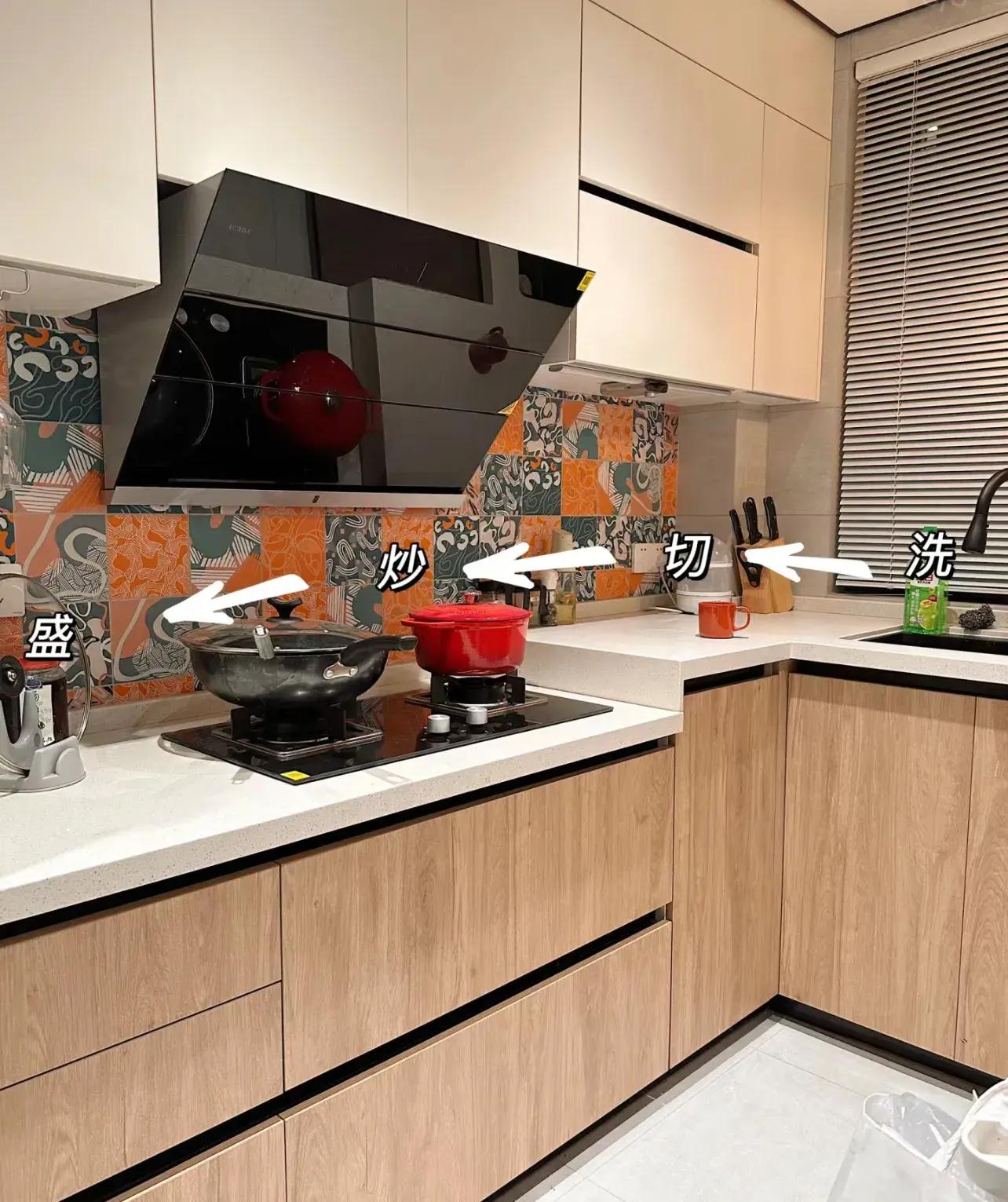 10、廚房動線,符合下廚的順序洗→切→炒→盛,纔是合理的,除非你家是別墅,能做下大中島,否則就是翻車。