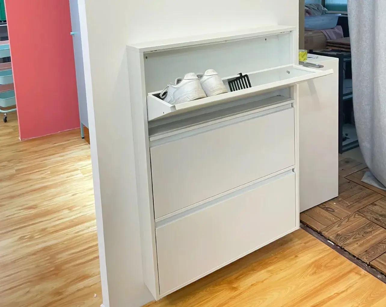 7、超薄鞋櫃,容量非常小,接近1米寬的櫃子,只能放10雙鞋左右。而且,稍微大一點點的運動鞋,就放不進去了。