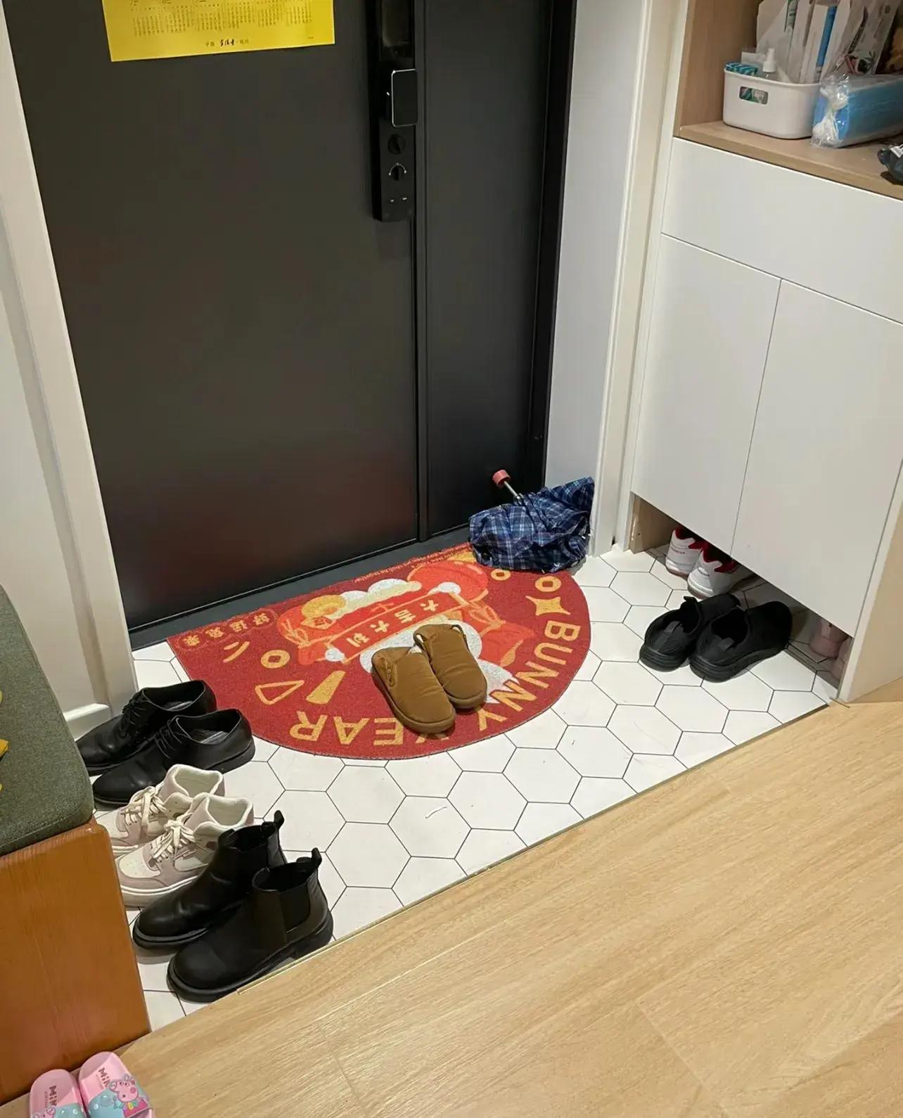 3、玄關鞋櫃,抬高了,做了懶人踢設計,想着常用鞋一人一雙,留的長度足夠了,門口可以整潔了。誰曾想,家裏都是蜈蚣精,人均常穿鞋子兩雙,還不自覺,門口也總是亂糟糟;