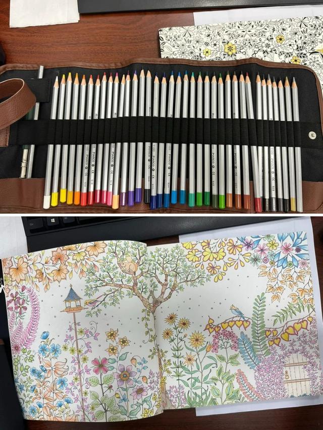 而且還買了一堆筆,誰知道四大本一共就畫了7頁半就閒置了。每次一塗就犯困,簡直是催眠神器。現在買來有七八年了吧,最近要搬家才翻出來,正好也有娃了,拿出來給娃當繪本玩了……