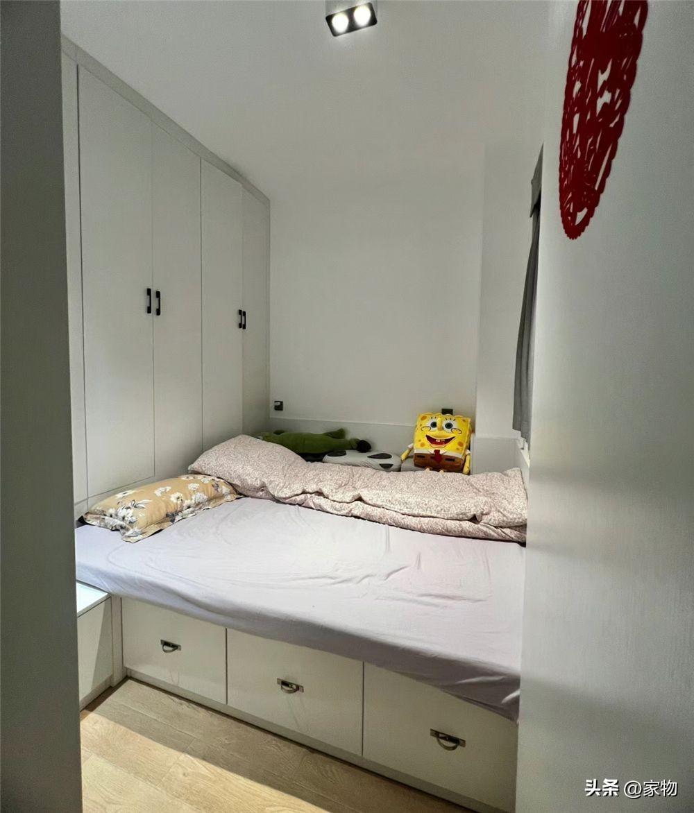 家裏的這間臥室面積同樣很小,做成榻榻米和櫃子相連,臥室內的窗戶也是朝北,有一定的採光通風又不會太曬,這樣一間臥室,起碼在我看來住起來還是挺舒服的。