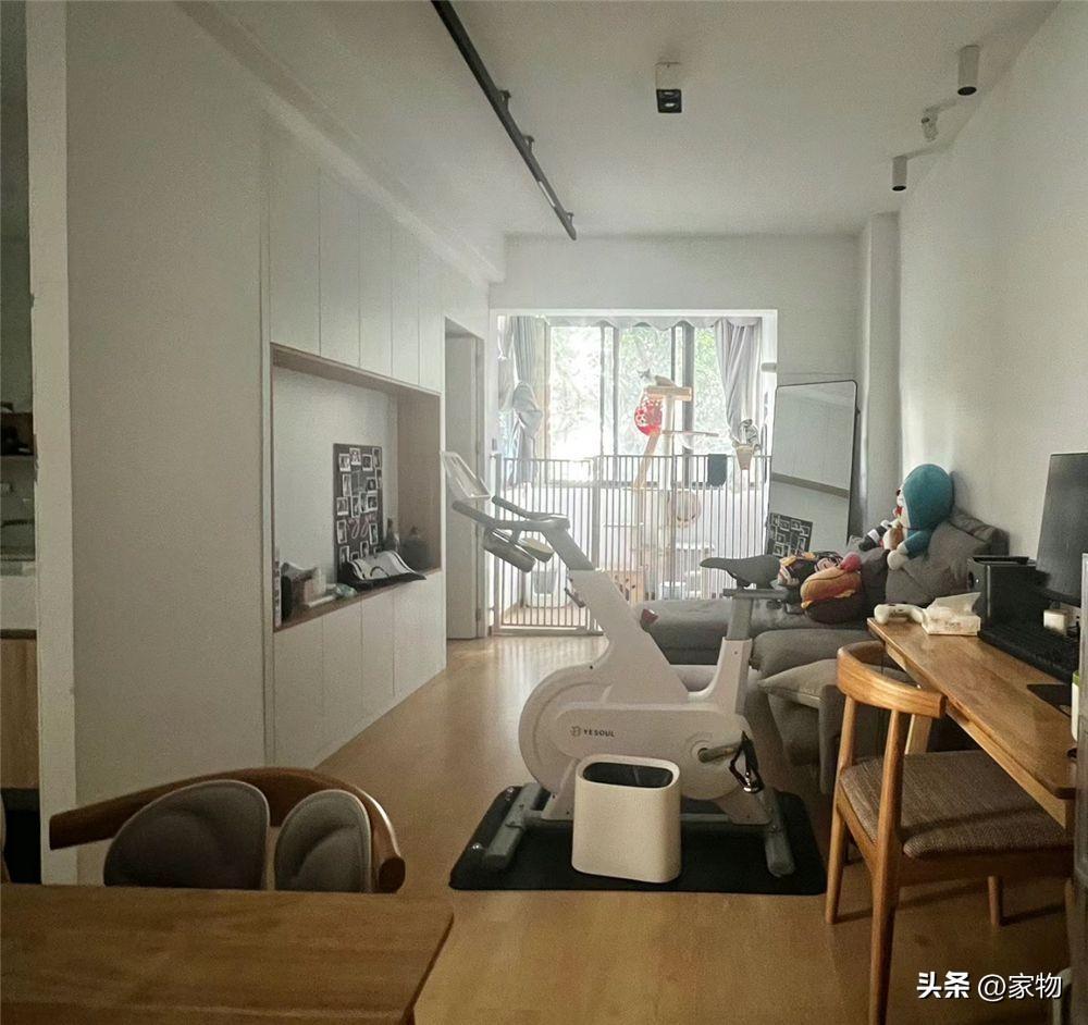 家裏的客廳,算是空間最大的區域,從玄關望向客廳,整間屋子又長又寬敞,即便放下動感單車、貴妃榻長沙發,也依舊留有自由進出的動線,再加上客廳和玄關打通,看起來就更顯大啦。
