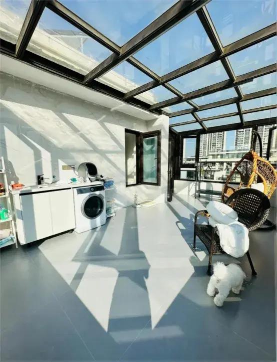 最大優點之一,尤其是對於大面積露臺而言,完成封閉後甚至可多出一個完整的功能空間,可以將一些原本設置在室內的空間(如書房 或者 洗衣區)挪移到露臺中去,室內多出一間臥室或收納室。
