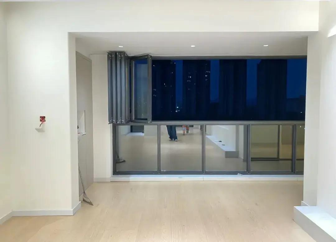既可以推拉,又可以摺疊的全景自由摺疊窗,加裝一層高清的隱形紗網,既保留了露臺的通風和視野優勢,又防噪音、雨水、灰塵干擾