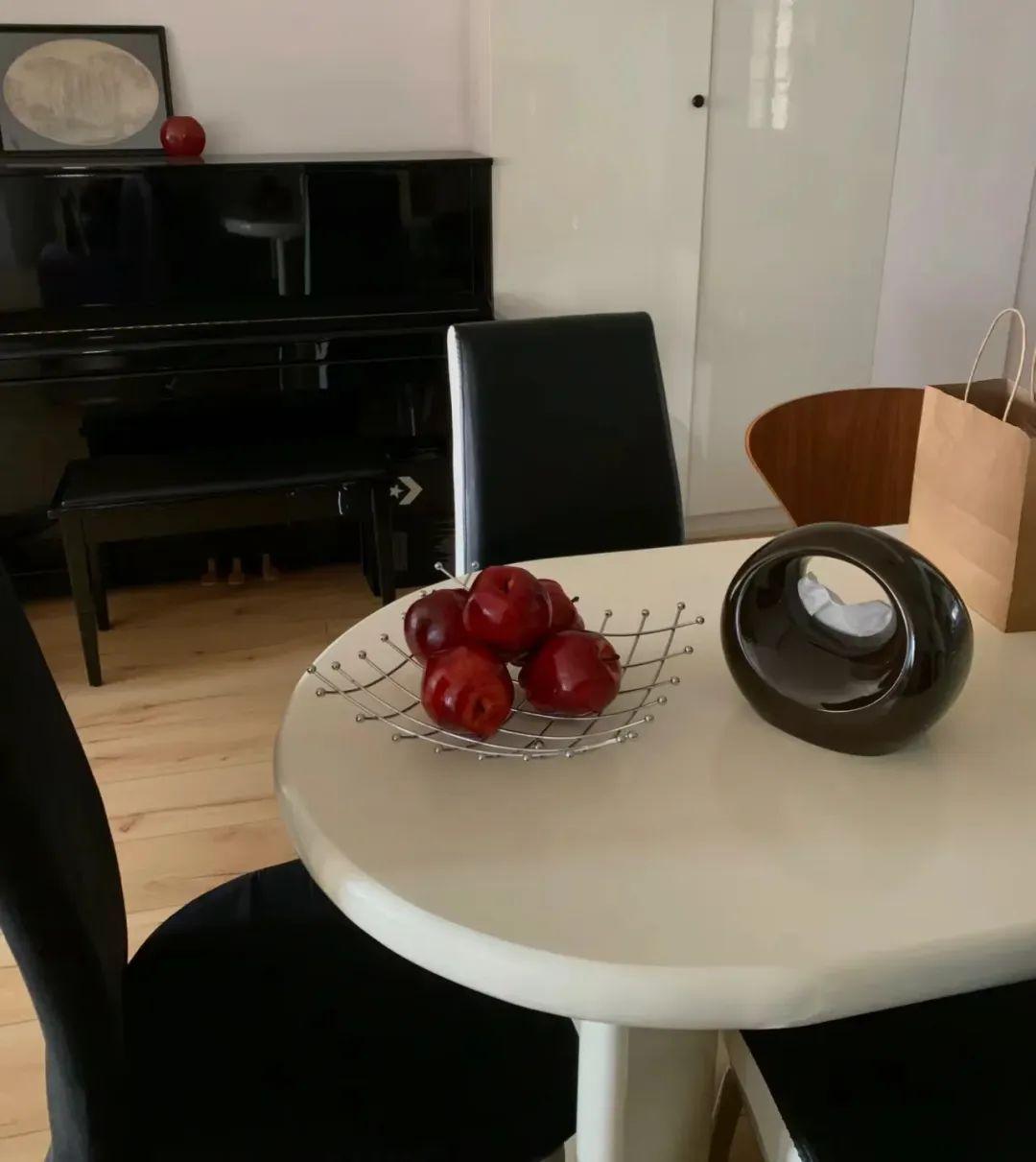 有的人用餐盤當果盤,用完後桌上空蕩蕩,又買個擺件放桌子上裝飾,其實不必如此麻煩,放一個有設計感的果盤足以。