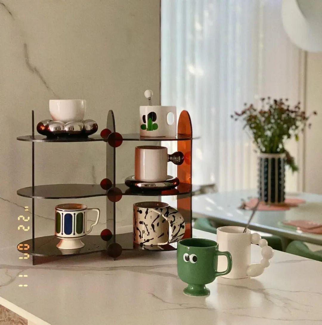 杯子控在擺件這塊更是拿捏,給自己喜歡的杯子們配一個茶色玻璃置物架,擺在餐邊櫃上,就是最完美的擺件!