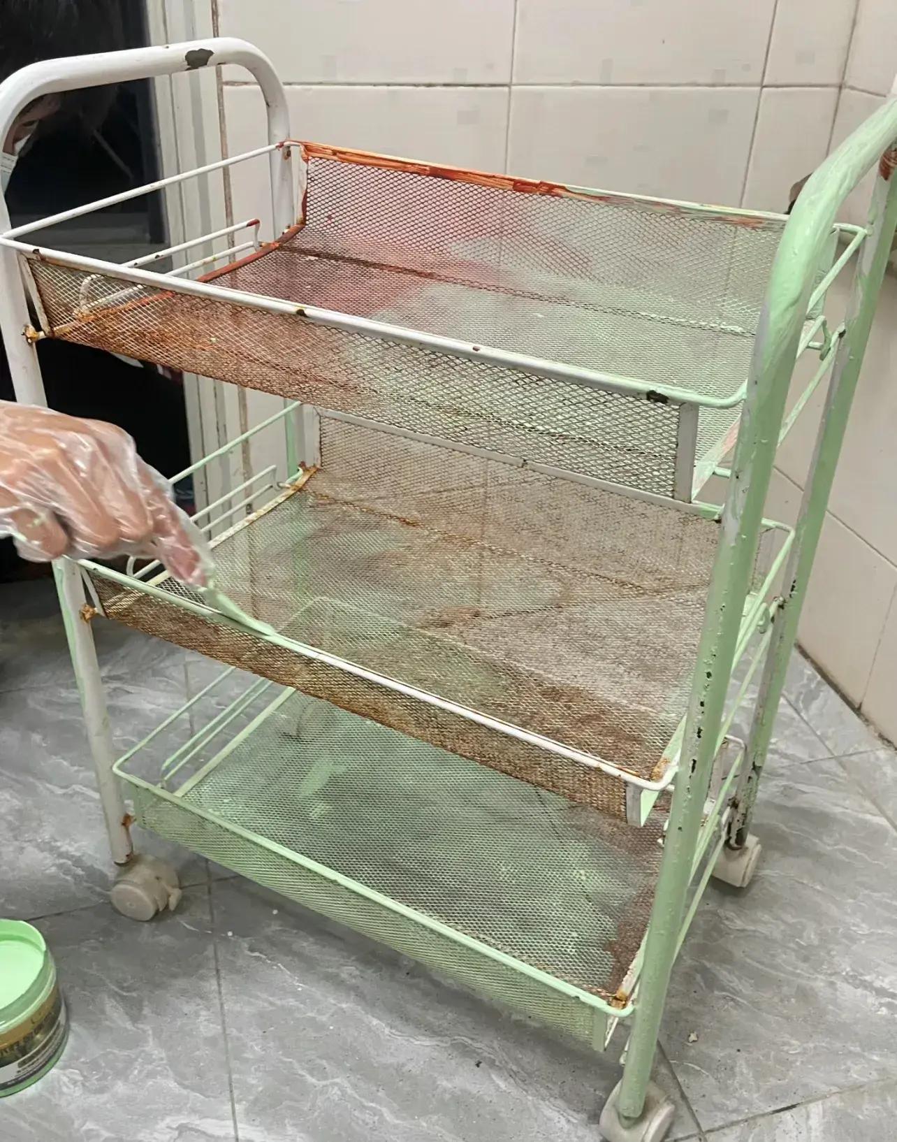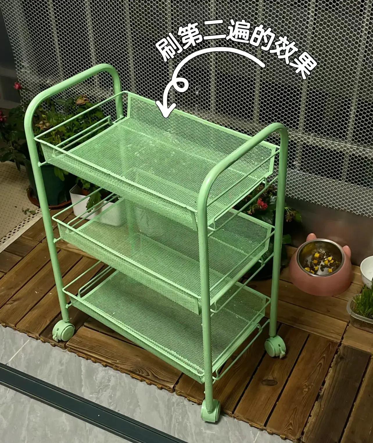 你瞅瞅這生鏽的小推車,如果不拾掇拾掇,估計只有扔掉的份了,但重新上漆,順便給它改了個顏色之後,它甚至比曾經更貌美。