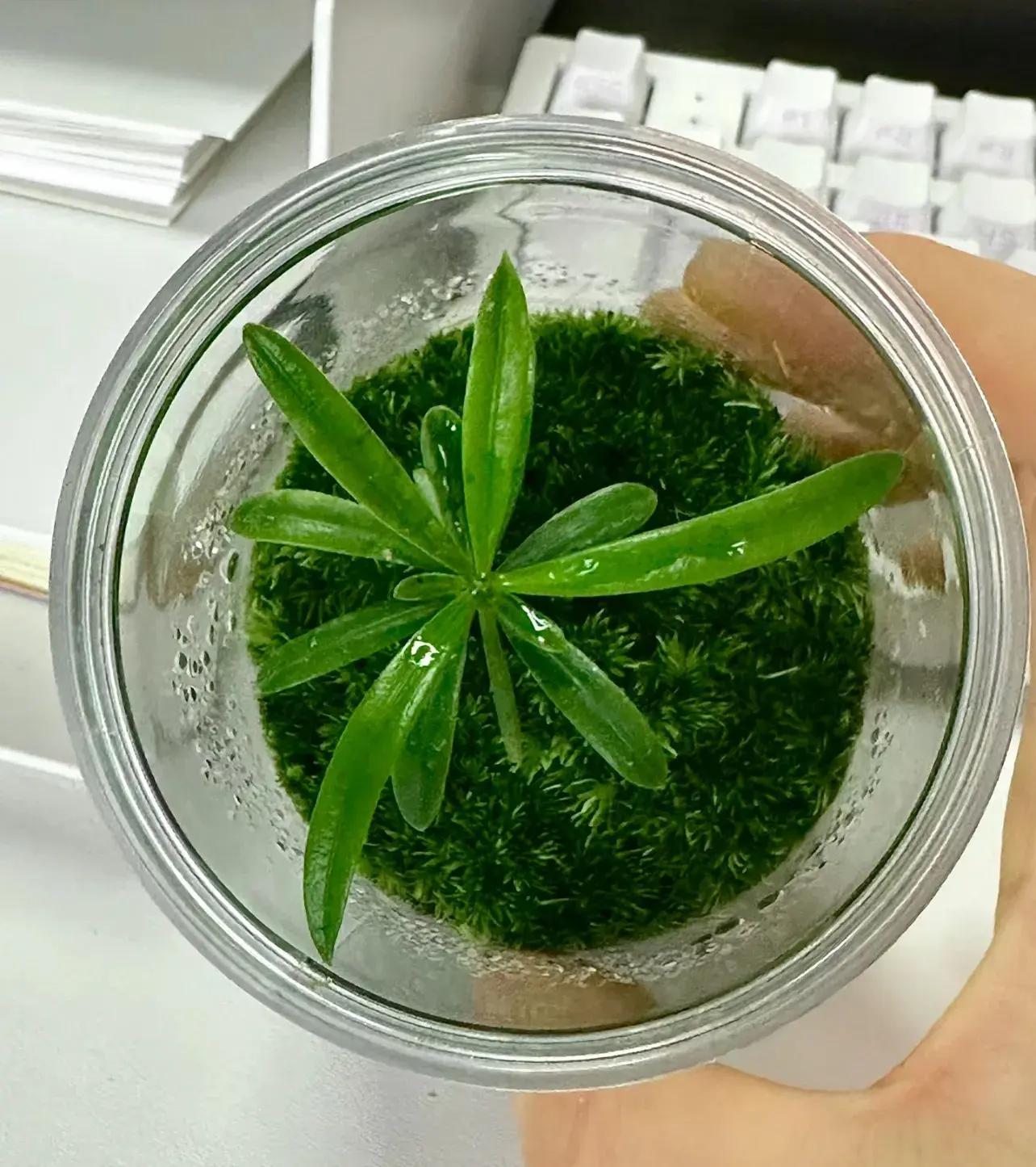 可不知道曾幾何時,它已經進化到了用閒置的杯子就能養的普通而清新的小景觀,就如辦公室裏的我們,是一顆低調而有活力的小草 。