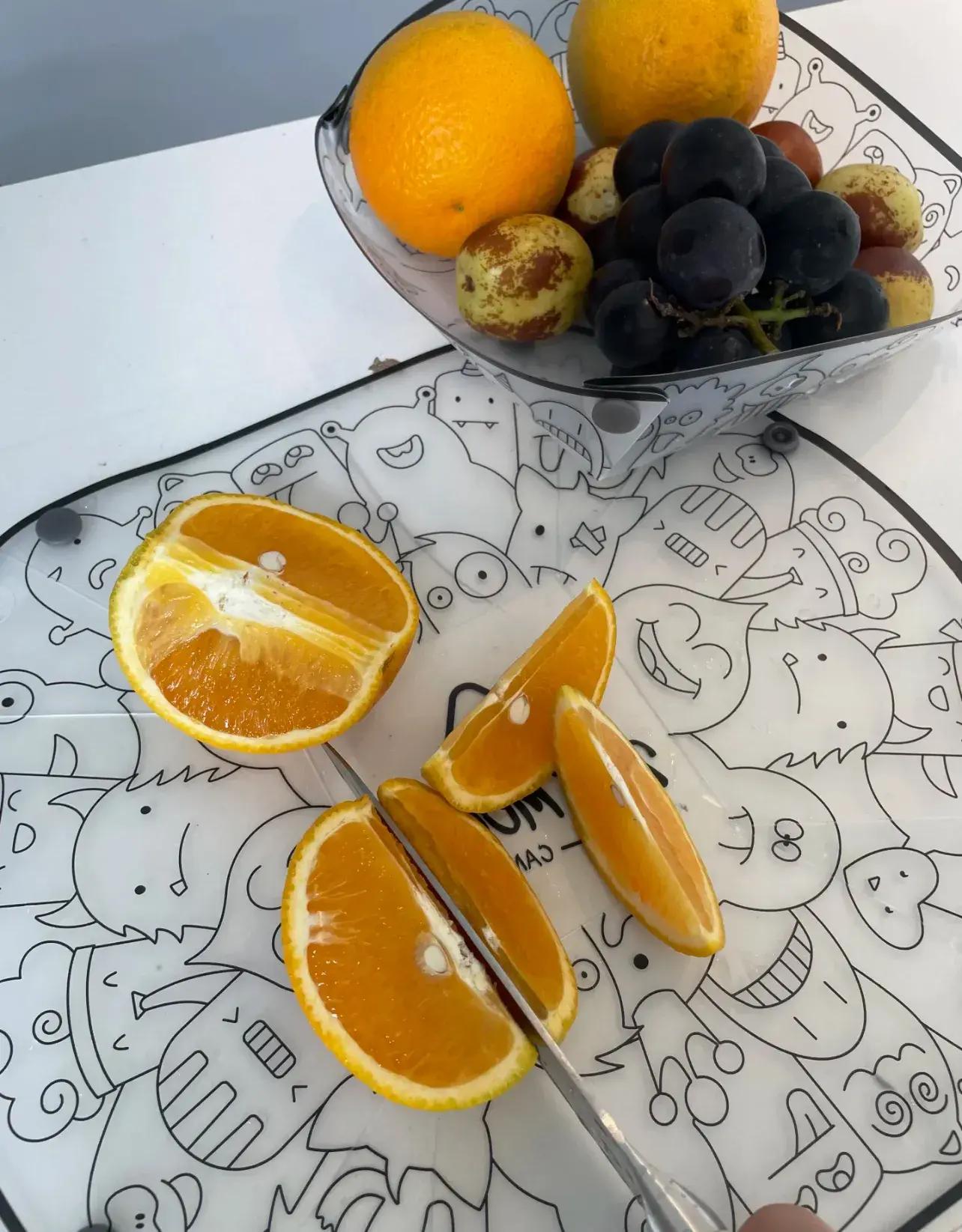 等到喫水果環節,再鋪開當菜板,一來是切水果能發揮正常水平,二來是也免得汁水流的到處都是。
