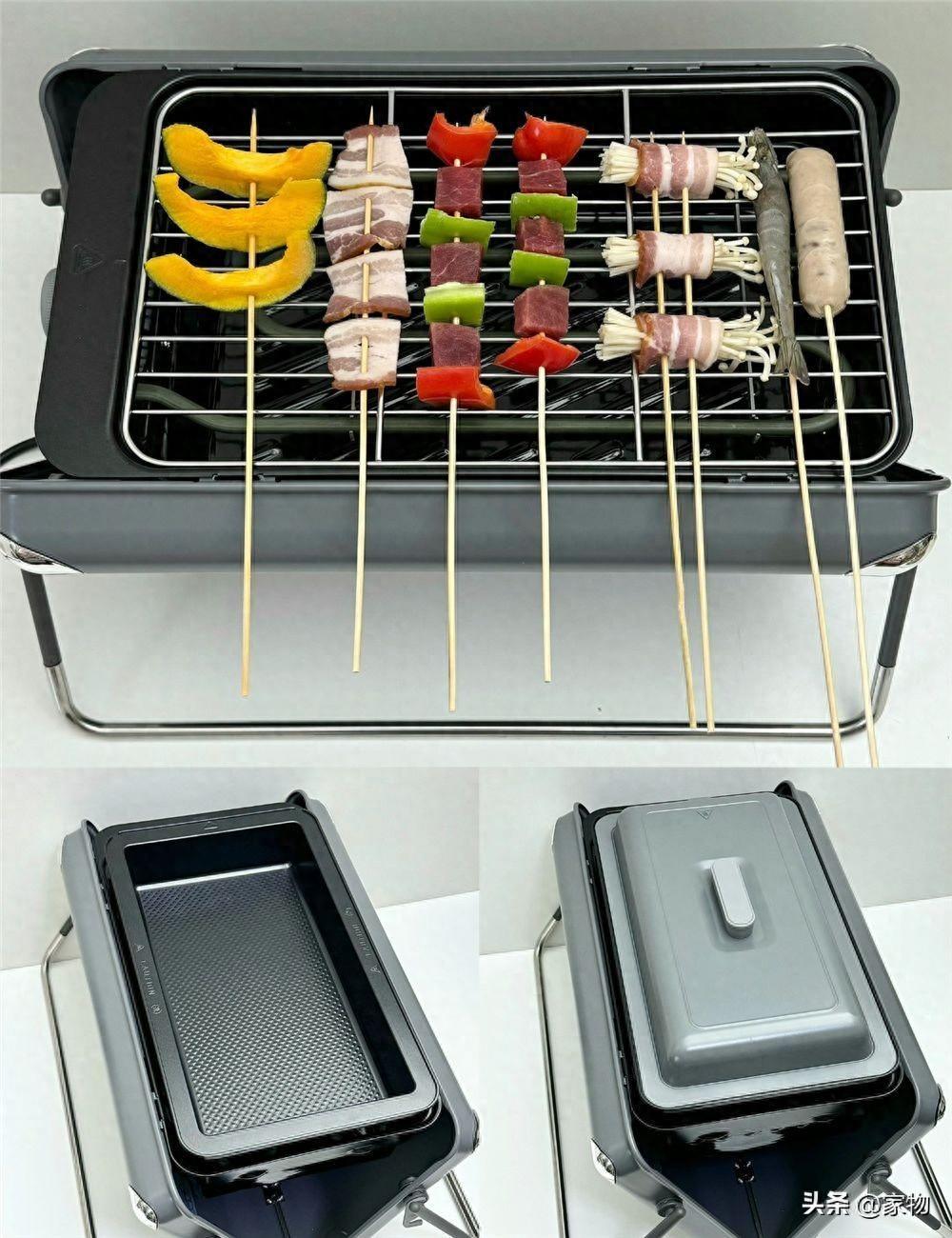 這兩用式的小烤串機很有意思,本身是個摺疊的,出去玩或在家用都很合適,同時它既可以插電又可以加碳,兩用的設計讓它使用更加靈活,甚至烤肉也可以用它,真值得買。