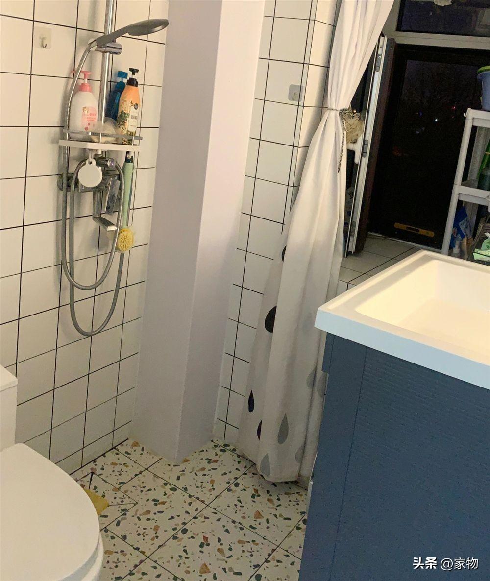 衛生間也很簡單,爲了嵌入洗衣機將櫃子做得高了一些,浴室放在角落處,用浴簾進行簡單的乾溼分區,日常如廁、洗漱、沐浴都很方便,簡單幹淨的小衛生間,補足了家中最後一塊功能區的空缺。