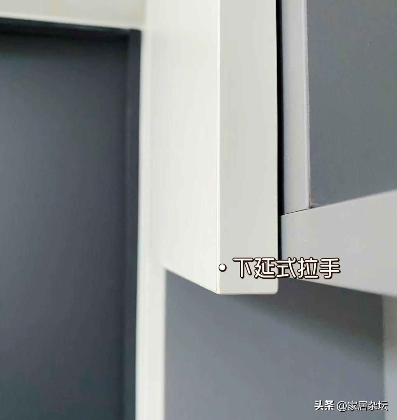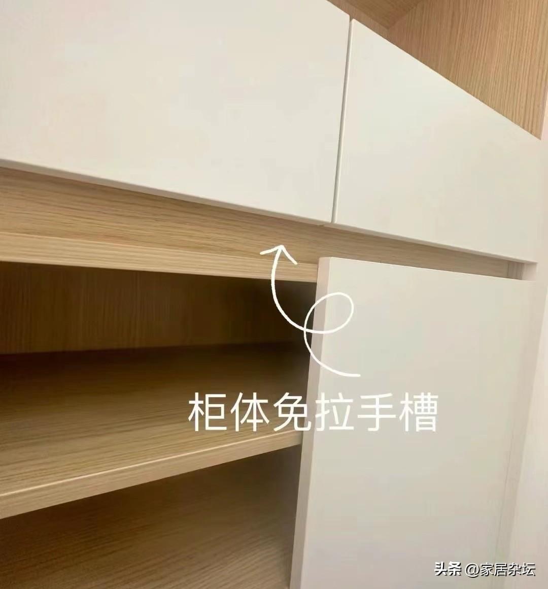 ①、門板出頭,可以用於我們家裏的鞋櫃、餐邊櫃,或者是地櫃。大多數也是我們可以伸手觸摸到的一些櫃門,就可以。