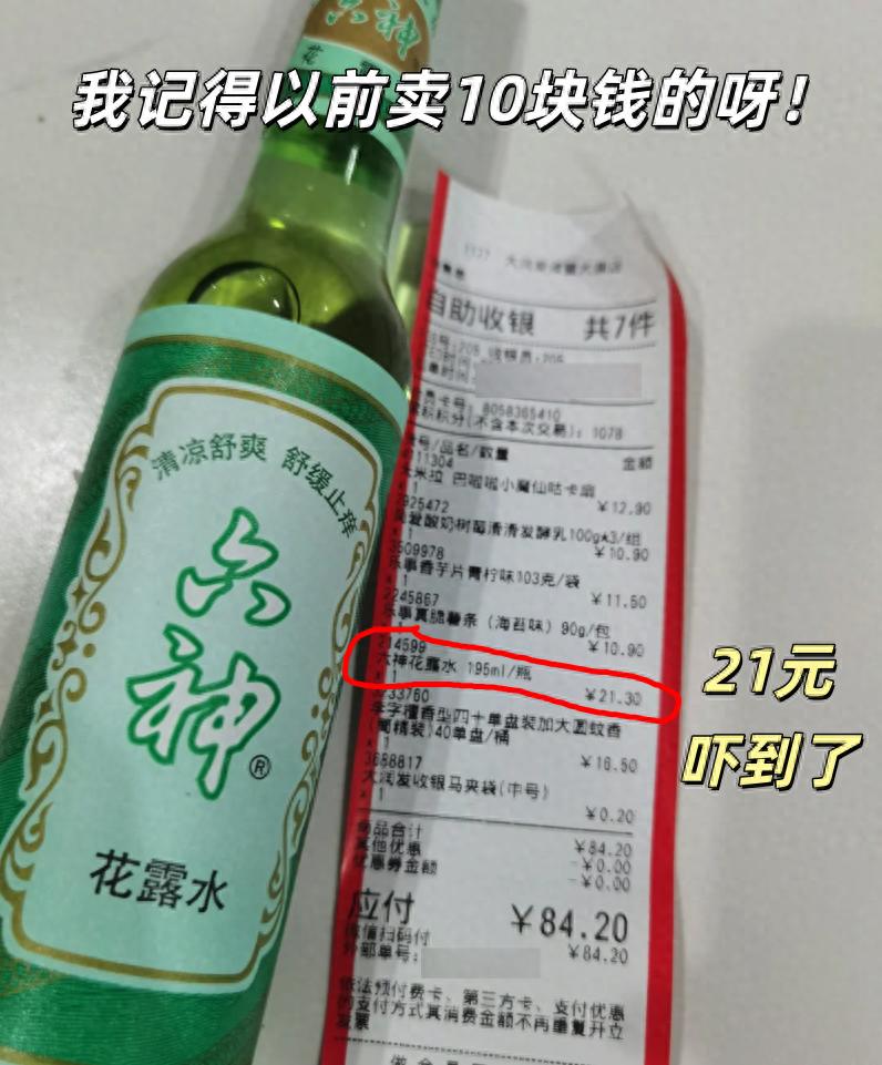 前段時間去了趟超市買驅蚊水,拿了瓶花露水直接沒看價格就裝購物車了,直到買完單時才被驚呆,21.3元?