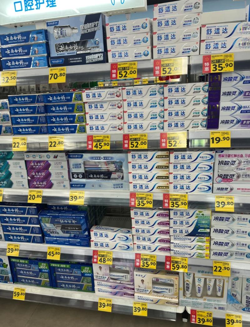 而逛了一下超市牙膏貨架,我直接打開了新世界的大門。20以下的挺難找,30、50的一大堆,頓時我在想,這裏的牙膏到底是誰在買?